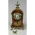 A TORTOISESHELL BOULLE WORK MANTEL CLOCK with Classical gilt-metal mounted decoration to body, and finial, scroll feet, circular dial bearing Roman numerals to each porcelain enamel digit, striking to a bell, believed eight-day, 30cms tall