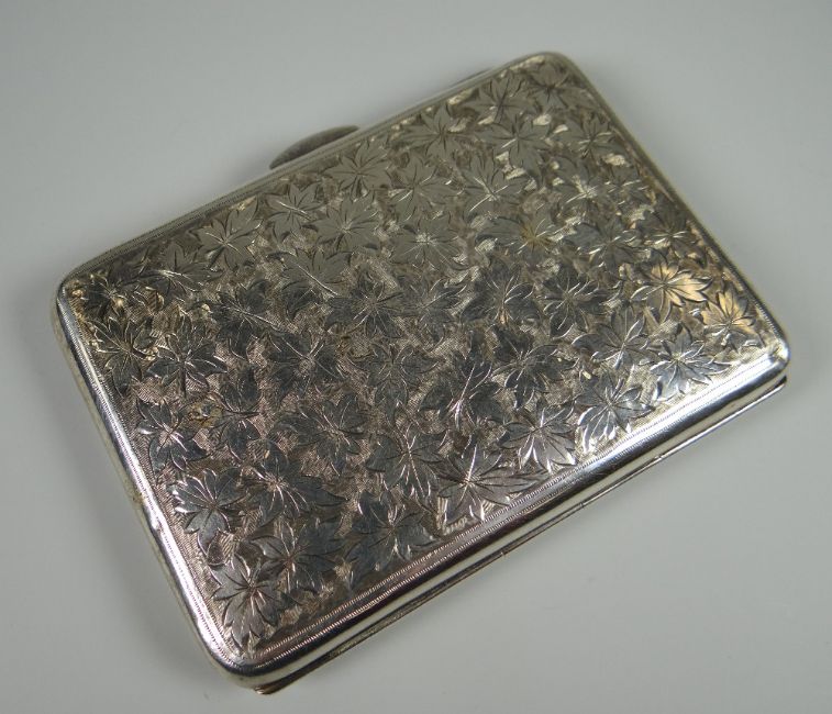 A CHESTER SILVER WALLET with green leather interior, single ivory note-page and white-metal pencil, the case with profuse leaf decoration and single circular cartouche, 4ozs, maker's mark for Stokes & Ireland Ltd