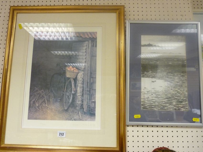 GERRY BALL RCA limited edition (220/450) print - vintage bicycle with basket of fruit in a tin shed, signed in pencil and a KEITH ANDREW print - titled 'Rhosneigr, Low Tide'