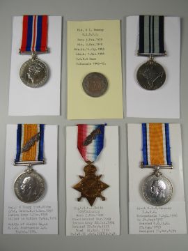 GROUP OF WWI & WWII PERIOD MEDALS to include 1914-15 Star, General War medal (both with oak leaf awards) together with Defence medal India 1939-45 medal & 1923 half crown relating to various recipients (with printed information cards) (5 medals, 1 coin) (possibly later engraved)(all medals to be bought as seen, condition reports available until 7pm Thursday 7th June)