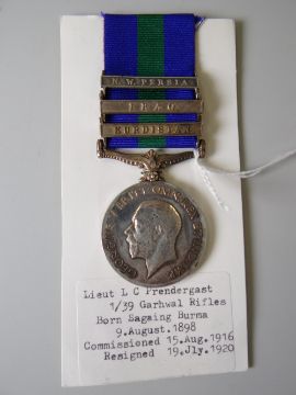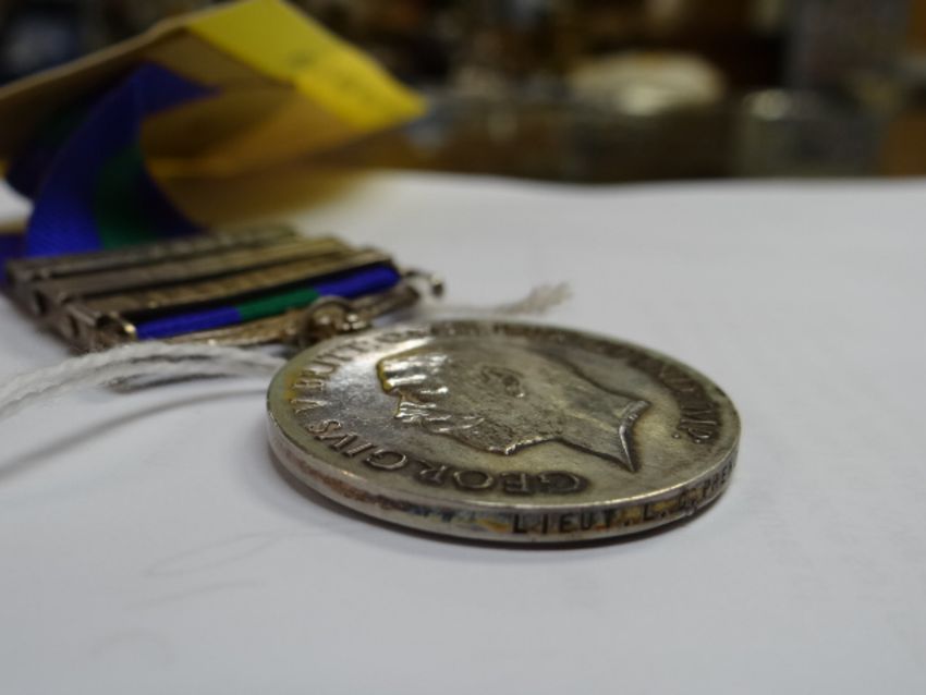 GEORGE V GENERAL SERVICE MEDAL with three clasps N.W. Persia, Iraq & Kurdistan, engraved to Lt. L C Prendergast (with printed information card)(all medals to be bought as seen, condition reports available until 7pm Thursday 7th June)