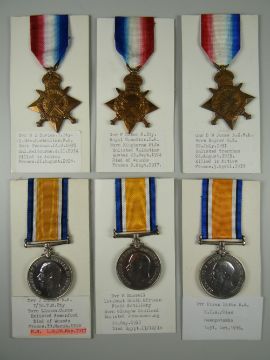 WWI PERIOD MEDALS comprising three 1914-15 stars & three British war medals, engraved to different recipients - many who were killed in action or died of their wounds (with printed information card) (6)(all medals to be bought as seen, condition reports available until 7pm Thursday 7th June)