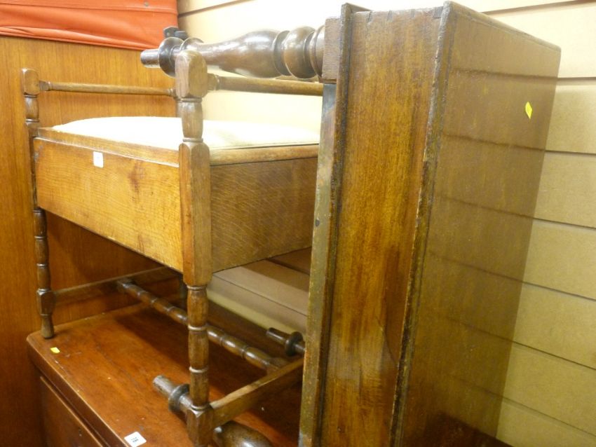 Polished wood box seat upholstered piano stool along with a mahogany antique bidet