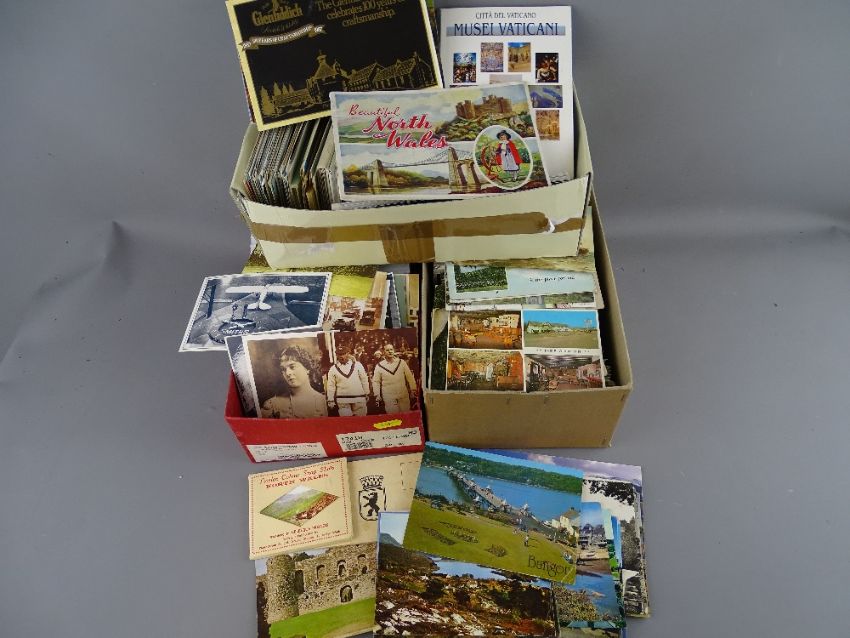 Large quantity of vintage postcards and other ephemera contained within three boxes