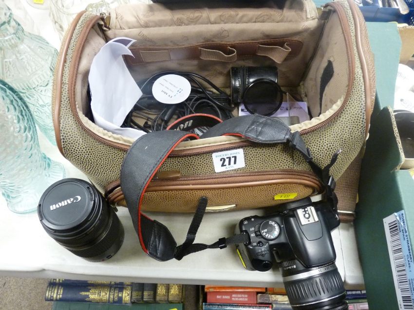 Canon Eos digital camera with charger and extra lenses in a bag etc