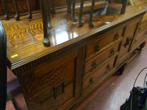 Oak railback sideboard with three centre drawers and two end cupboards