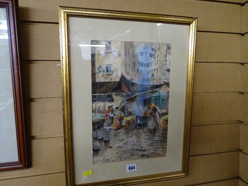 Indistinctly signed watercolour study - Mediterranean street scene