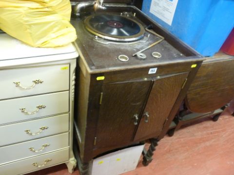 Vintage record player in wooden case with integral speaker and a quantity of records