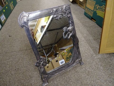 Art Nouveau style dressing mirror in white metal (unmarked)