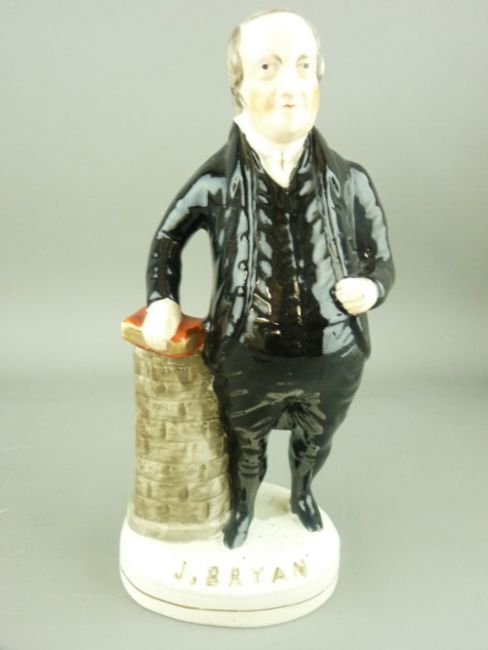 TWO STAFFORDSHIRE PORTRAIT FIGURES including the rare 'Sir De Lacy Evans', the other 'J Bryan', 32 and 26 cms high respectively (restoration to the neck of Evans figure)