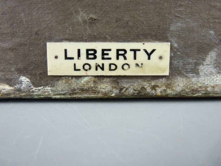 A LIBERTY OF LONDON ART NOUVEAU COPPER WALL MIRROR with stylized tulip decoration and Liberty label to the reverse, 62.5 cms high, 39.5 cms wide
