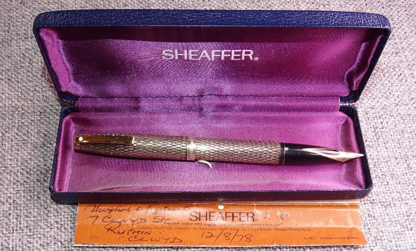 Vintage Gold filled Sheaffer Imperial Sovereign fountain pen with Diamond pattern and gold plated trim. Fitted with a 14K solid gold inlaid nib. Boxed