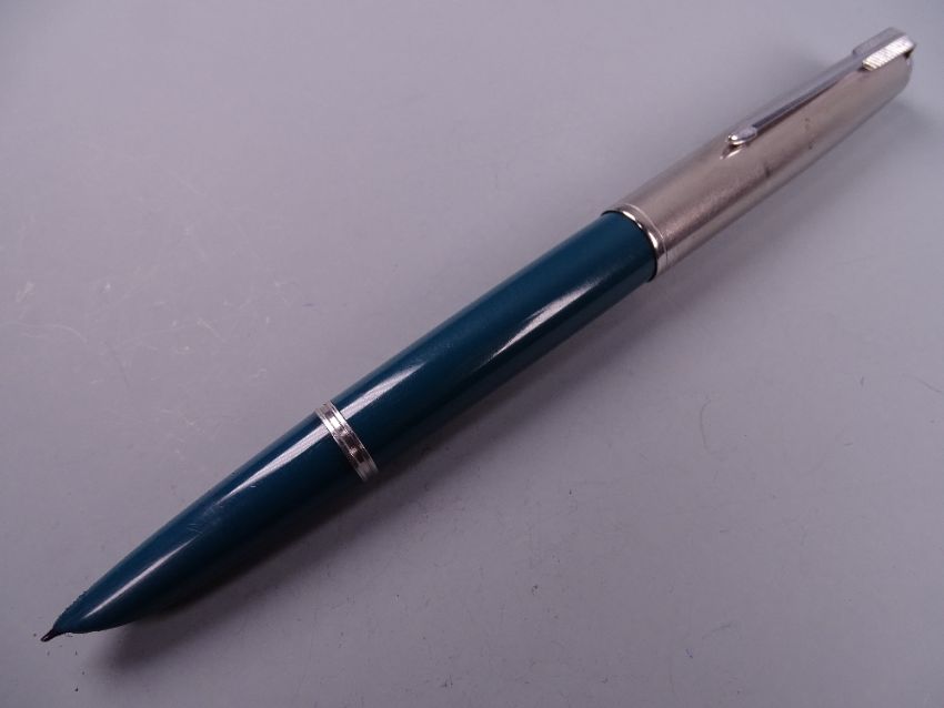 Vintage forest green Parker 51 fountain pen with Lustraloy cap with chrome plated clip, in original box