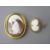 A LARGE VICTORIAN PINCHBECK CARVED CAMEO BROOCH and one other, 6.25 and 3 cms long respectively