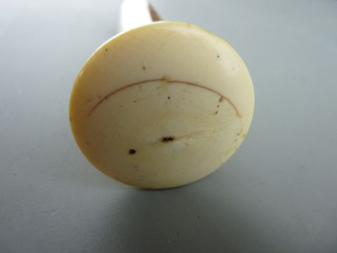 A MALACCA SWORDSTICK with ivory/bone grip and brass mounts, 50 cms long, the near square blade, 93 cms long complete