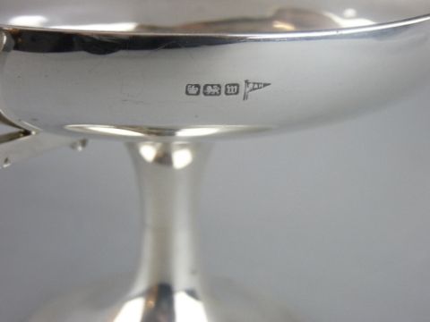 A STYLISH SILVER TWO HANDLED TAZZA by Walker & Hall, Sheffield 1914, 15 troy ozs, 15 cms high