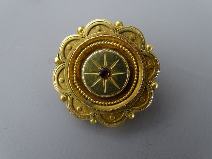 A SILVER & MALACHITE BUCKLE BROOCH (one of the five stones missing), a pinchbeck target type brooch (damage) and a seven amber stone floral shaped brooch etc