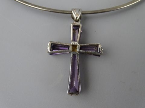 ITALY 925 SILVER COLLAR with large pendant cross set with facet cut purple stones