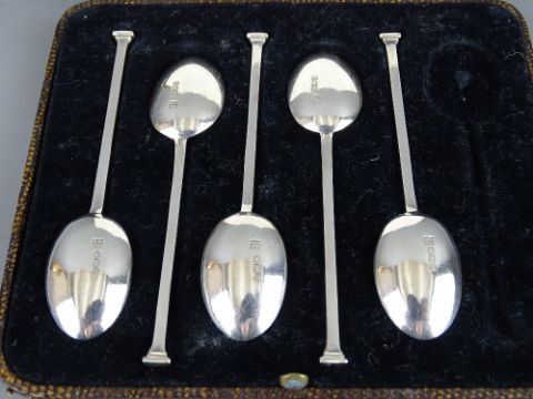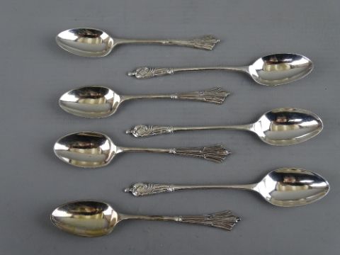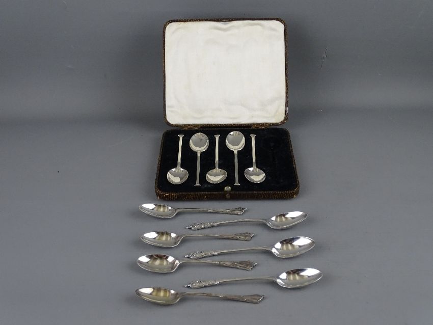 TWELVE SILVER TEASPOONS in three part sets, various hallmarks and designs, 3.7 troy ozs gross