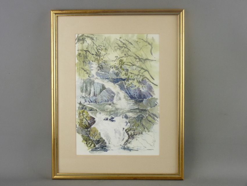 ANN FELLOWS watercolour - titled 'Secret Waterfall', 30 x 21 cms SIGNED
