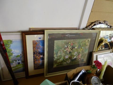Parcel of mixed paintings, prints, mirrors, walking sticks etc