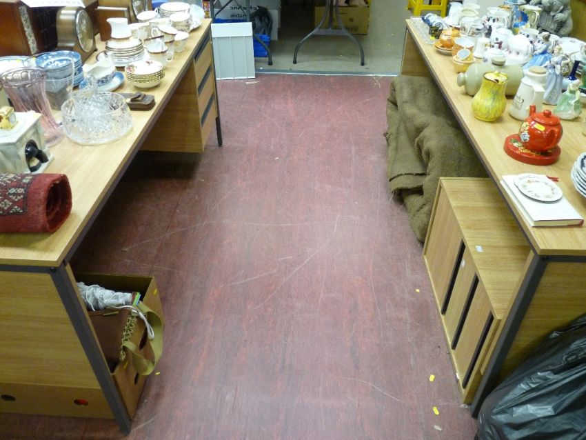 Pair of modern office desks and a three drawer filing chest