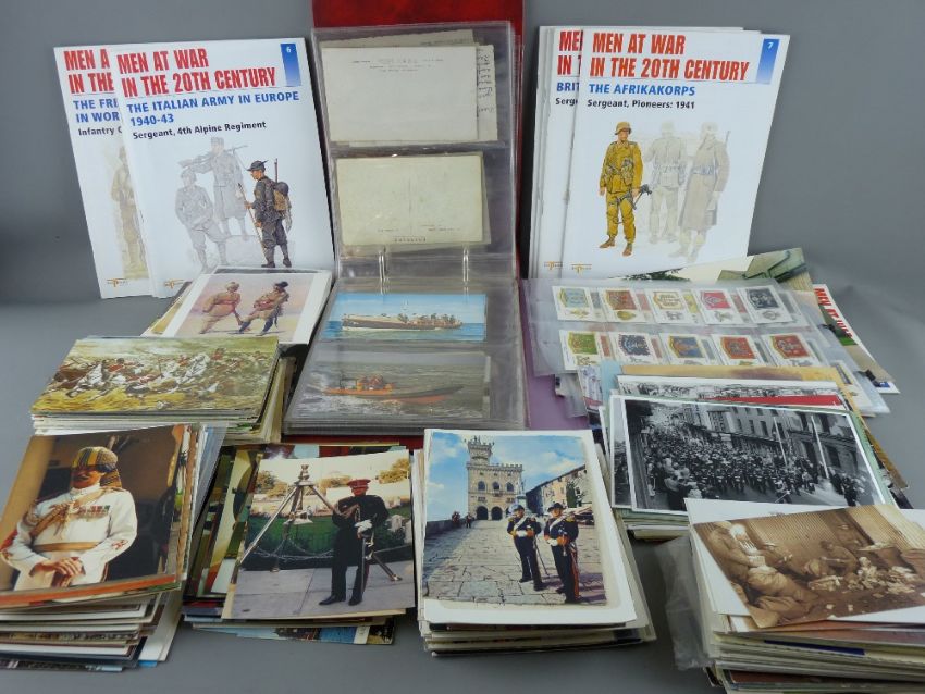 Collection of vintage postcards and ephemera, predominantly military with an album of planes, trains and boats