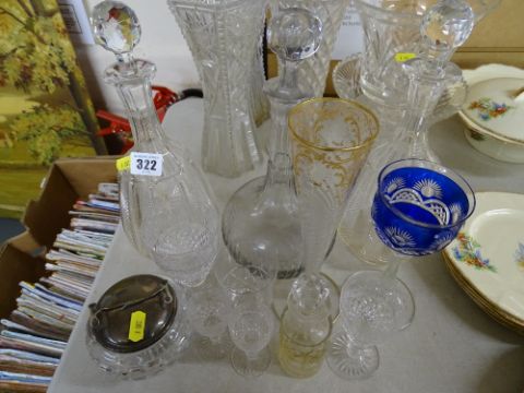 Pair of cut glass decanters and one other along with a mixed quantity of drinking glassware