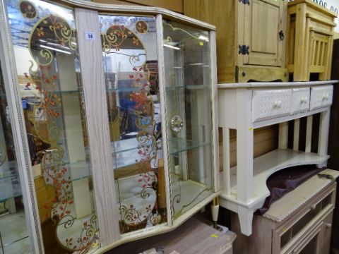 Ornate two door china display cabinet and a white hall table with three central drawers