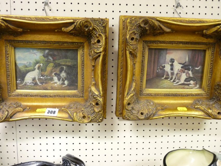 Two ornately framed vintage dog themed prints