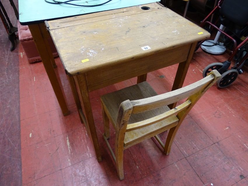 Vintage lift-up lid school desk and chair