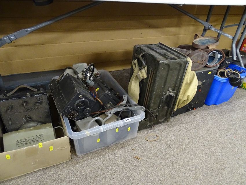 Quantity of vintage electronic armed forces equipment to include a Crystal Rectifier test set type TS 2684/U, an all wave oscillator, a MkIII backpack wireless set (in part), an aircraft radio receiver, a Navy Department frequency indicator etc