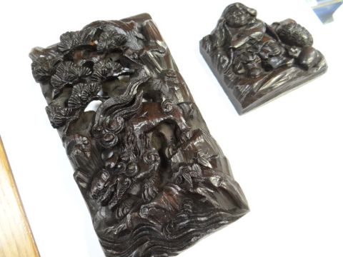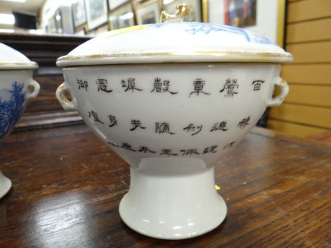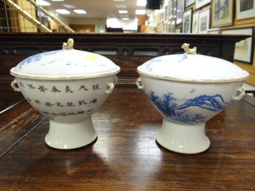 A Chinese bronze planter, carved panels & a pair of Chinese lidded food bowls condition:There is gilt wear on the bowls otherwise all good, no issues. The planter has its base removed