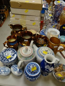 Lustre jugs, Chinese teapots, boxed collectors plates etc