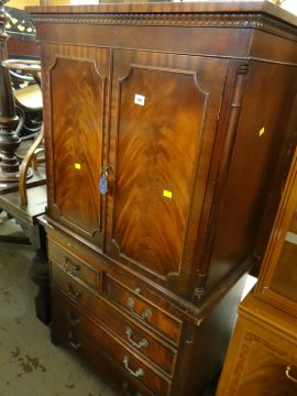 A reproduction mahogany gentleman's chest of drawers with a desk top