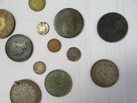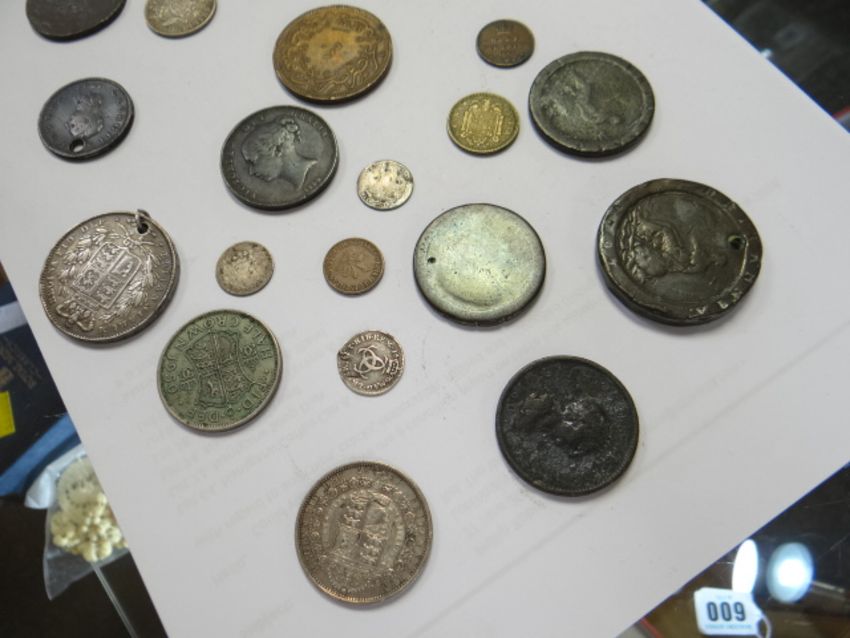 Parcel of old coinage & a sovereign holder including a 1676 Charles II coin