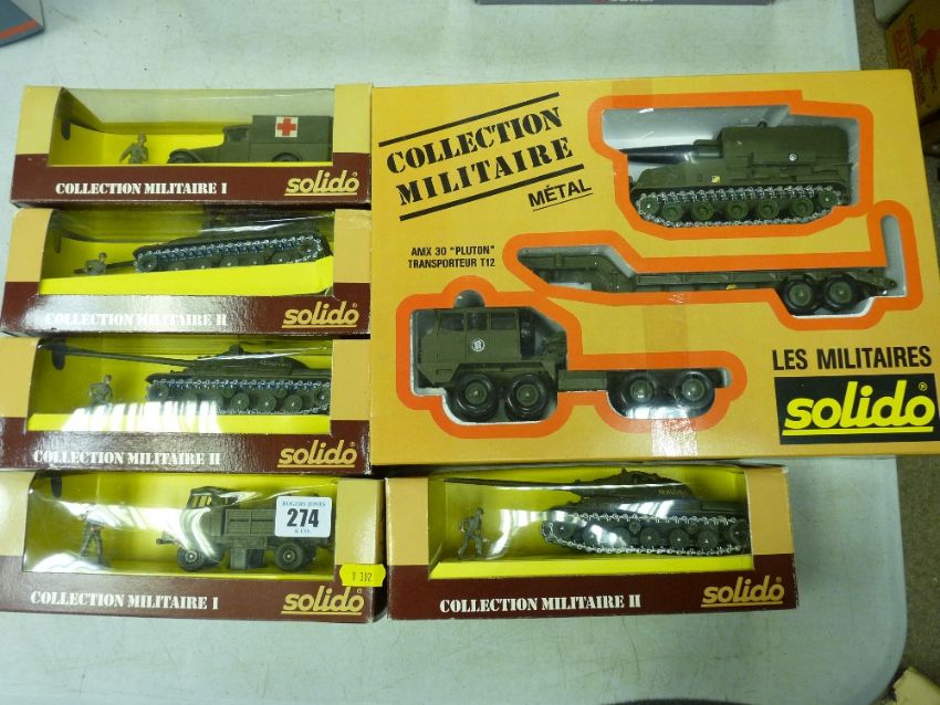 Solido boxed diecast military vehicles including an AMX 30 Pluton transporter, three AMX 30 tanks etc
