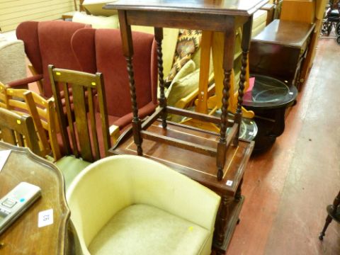 Cane type commode, polished tea trolley and a barley twist occasional table
