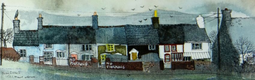 RAY EVANS watercolour - entitled 'Miner's Cottage', signed, 8 x 24cms