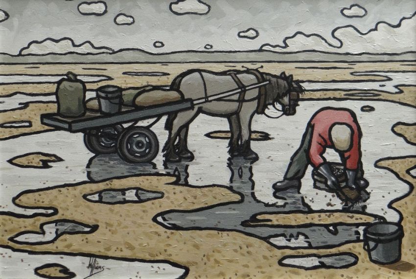 ALAN WILLIAMS acrylic on canvas - entitled 'Cockle Picker', signed, 40.5 x 58cms