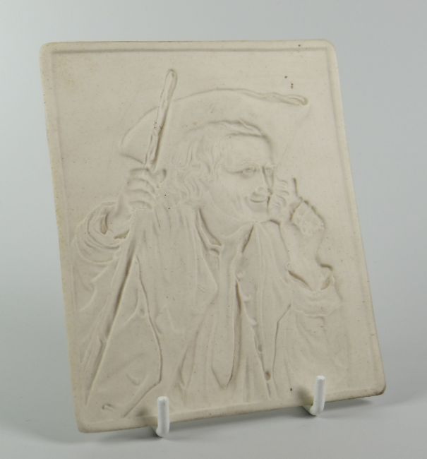 AN IMPORTANT & RARE LLANELLY PORCELAIN LITHOPHANE of rectangular form and moulded with a head and shoulder portrait of a shepherd in wide hat and holding a stick, 13 x 11cms
