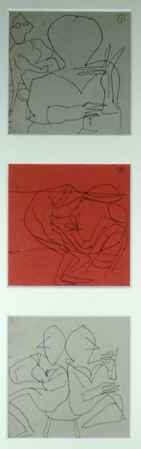 JOHN UZZELL EDWARDS a trio of a series of three (9) pen & ink drawings - figures, each 10 x 10cms approx