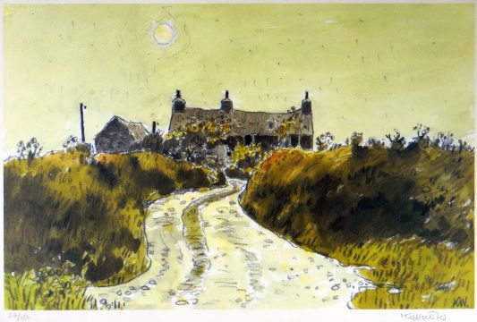 SIR KYFFIN WILLIAMS RA colourwash limited edition (26/150) print - a farmstead at the top of a lane, signed in full, 39 x 57cms