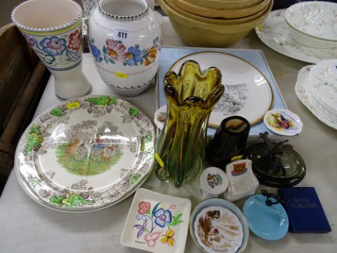 Mixed selection of decorative crockery and glassware by Poole, Royal Worcester etc