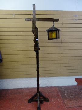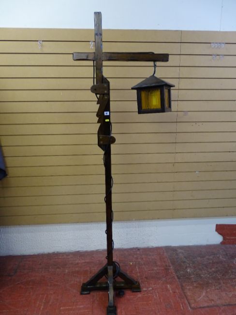 Wooden Jacobean rustic standard lamp E/T
