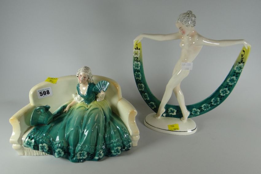 Two continental figures - Deco female figure & a seated Regency figure They both look good, without damage or restoration, there is what looks like slight wear to the bonnet of the lady sitting down. The tall figure is 30cms highThe seated lady is 18cm high *Please note that condition reports are always supplied in good faith, however they are subjective and it is always recommended that potential buyers inspect themselves.