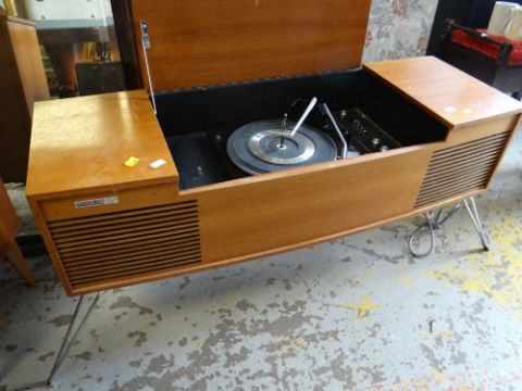 A teak Deccalian 12 vintage radiogram with a Garrard turntable together with a cabinet of LP records