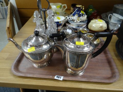A Viners of Sheffield three-piece EPNS teaset, EPNS condiment stand etc