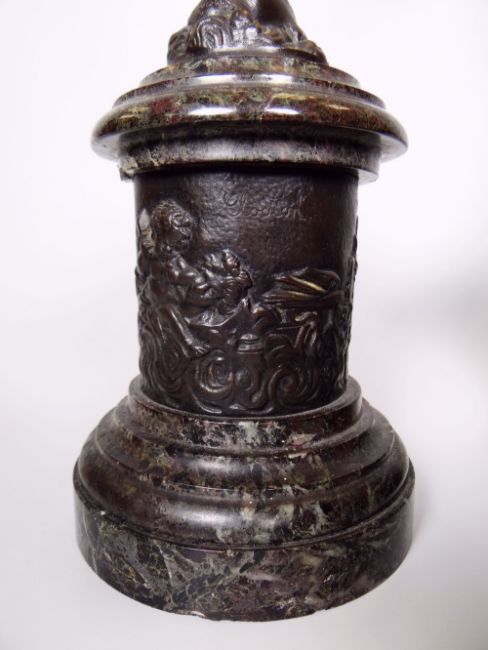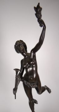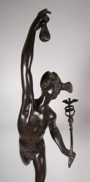 After CLODION, a superb pair of bronzes of Mercury & Ceres standing on relief decorated pedestals with veined marble bases, signed, 58cms high