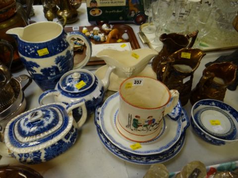 Parcel of mixed china including lustre jugs, blue & white teapots, jug etc